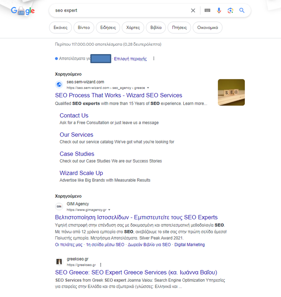 - Search Engine Optimization Επαγγελματική Υποστήριξη (έτσι εμφανίζεται στα οργανικά αποτελέσματα)