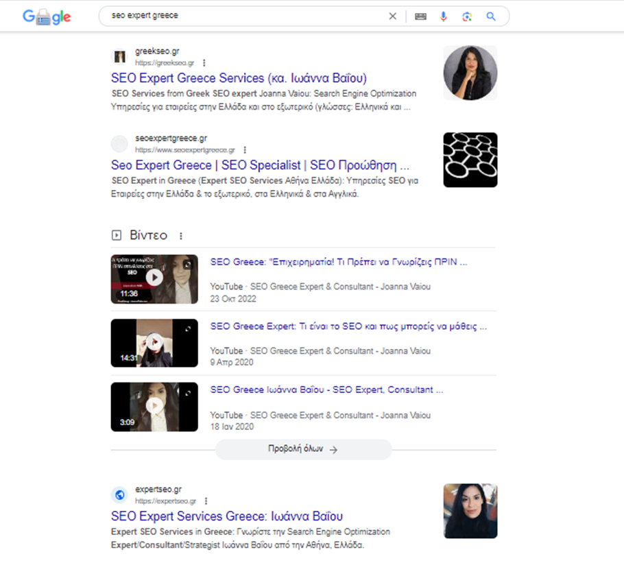 Τα παραπάνω είναι κάποια παραδείγματα επιτυχημένου SEO Marketing της Ιωάννας Βαΐου για το δικό της SEO brand.